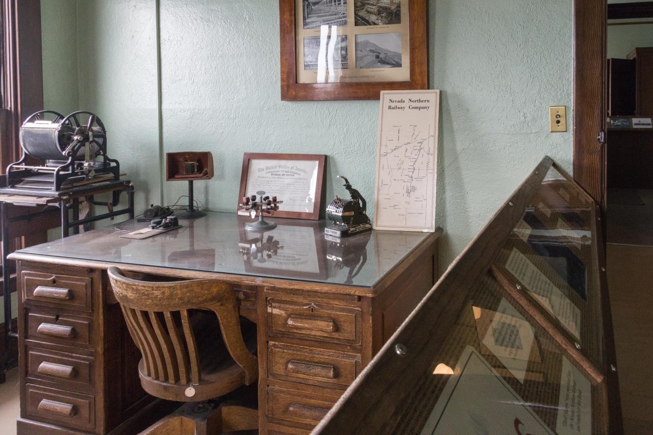 Not only did Kennecott leave behind train engines and cars, they also abandoned office equipment and all of the accounting records dating back to the inception of the Nevada Consolidated Copper Company. The state of Nevada then acquired the depot for the museum in 1990.
