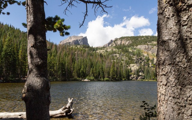Hallett Peak framed by the trees