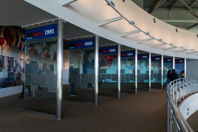 The glass wall, massive Air Force One raised on 25-foot (7.5 m) pillars, Reagan’s travel timeline, a Johnson-era Sikorsky VH-3 Sea King helicopter (Marine One), Reagan’s 1984 inaugural presidential limousine, and the history of the Flying White House mural, made this exhibit my favorite part of the whole museum. The 90,000-square-foot (8,400 m2) addition is breathtaking and awe-inspiring.