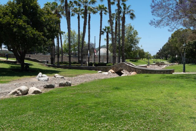 We parked near the 3.8-acre Memorial Park where there is lush green grass, lots of trees, an amphitheater, swimming pool, play equipment, and gymnasium.
