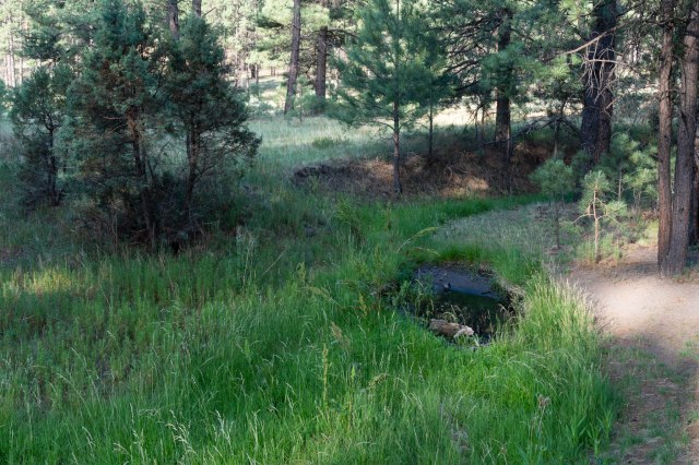 A squabbling congregation of crows greeted us at the trailhead. Their debate followed us several yards as the trail wound its way near the creek, and finally abated as we continued up and down hills, and through a varied landscape of junipers, pines, and cactus. (Note: Yes, I know “murder” is the technical term for a group of crows, but I liked the ring of congregation or crows)
