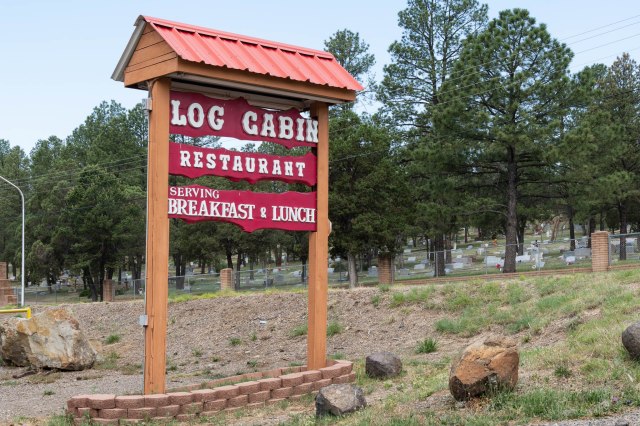 The crows were still squabbling when we returned to the trailhead. Apparently, they hadn’t resolved their disagreement. Back at the truck, Jon realized his hiking shoes had carried him for the last time. A trip to mid-town to buy a new pair was added to our daily to-do list, but first we needed food. Cars had crammed into the parking lot in front of Log Cabin on previous days when we passed by. On this day, we lucked out with a spot in front and enjoyed a filling breakfast.