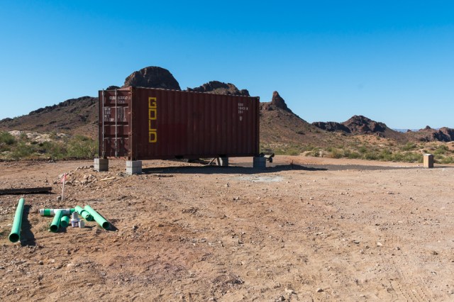 Container structures for the bar, store, restrooms, and band stage