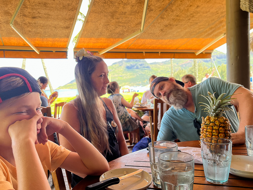 We thought about eating at Gaylord’s because their menu looked so good. But we opted to drive to the Barefoot Bar at Duke’s Kauai. Unfortunately, we had to wait about an hour in the tropical sun.