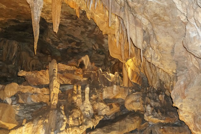 An ancient underground river created the usual formations common to caves: stalactites, stalagmites, columns, soda straws, flowstones, cave pearls, and draperies. Water still drips from above, a sign the formation of limestone process continues.