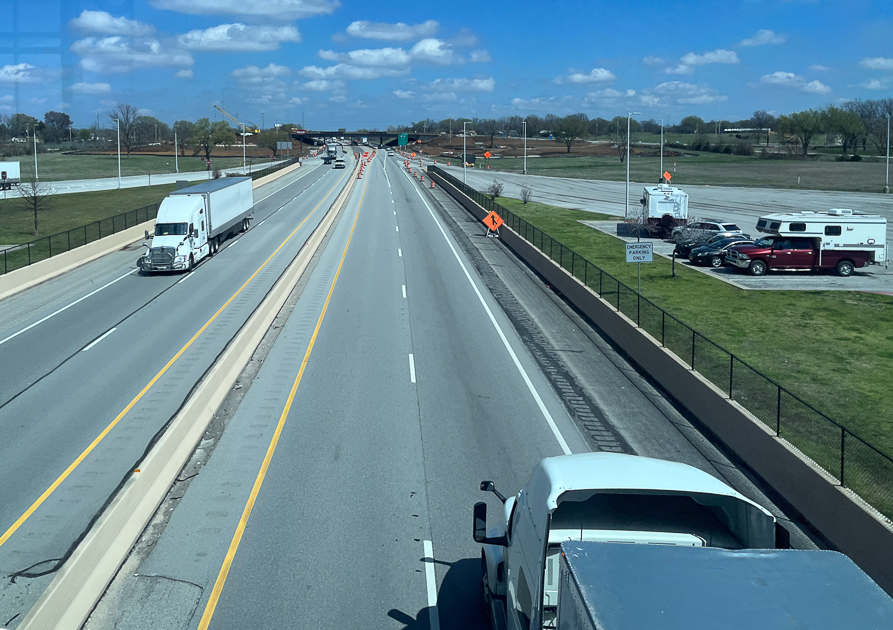 The vehicles and big rigs driving below and maneuvering in and out of the parking lots entertained us while we ate lunch.