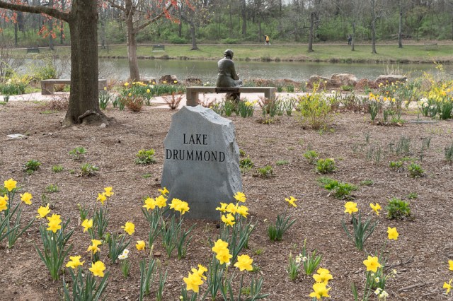 Dedicated in 2001, Lake Drummond is a popular place for people walking or jogging along the 7/10-mile loop trail that encircles the lake. Hidden gardens and lake views guarantee something of interest every few feet or so.