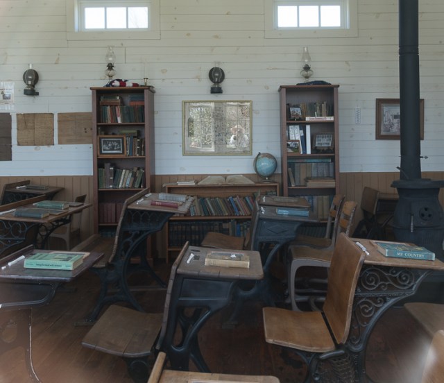 The Liberty School operated from the mid-1800s until 1951 when it was consolidated with the Fair Grove district. Renovations were made to the structure after it moved to the garden, using the current building and ADA codes. The blackboard, bell tower, and many of the desks are the same as those used during the school’s active life, giving it an air of authenticity.