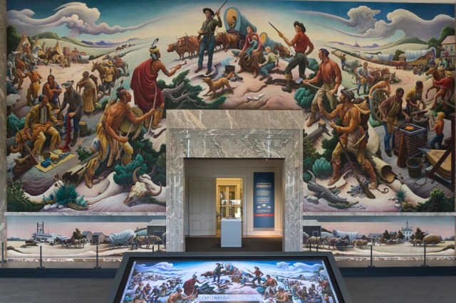 One exhibit not to be missed is the Thomas Hart Benton mural titled Independence and the Opening of the West. The mural depicts life along the Santa Fe, California, and Oregon Trails in the mid-19th century. One photo cannot capture all the images.