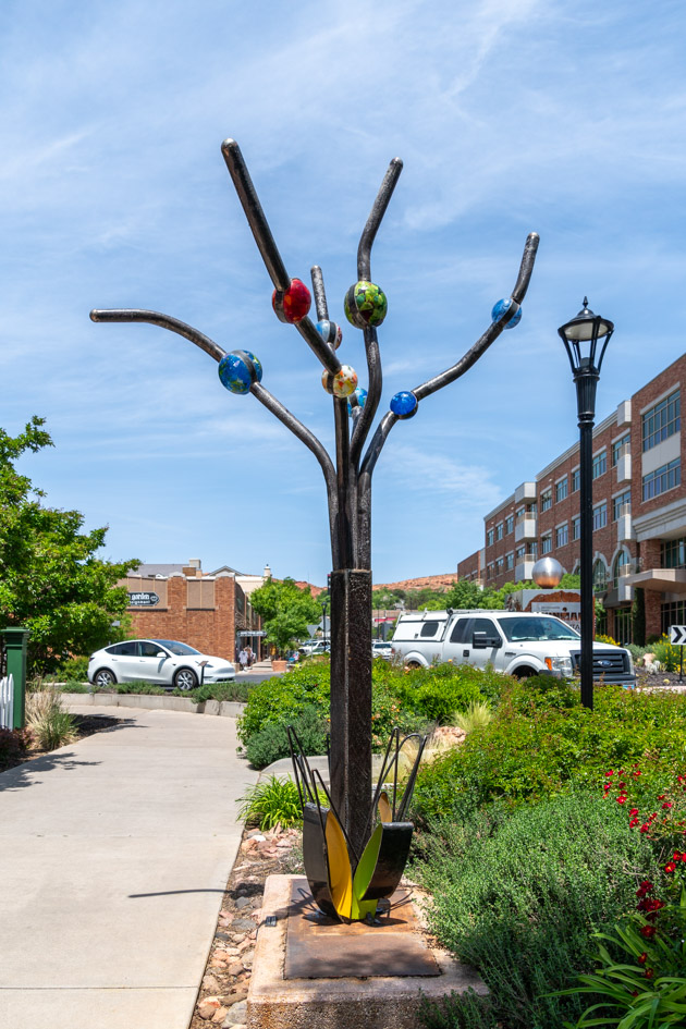 Had we known St. George possessed a rich array of art in the city, we would have stopped before on one of our trips along Interstate 15. Murals grace sides of buildings, sculptures stand center stage in the middle of roundabouts, and bronze statues and other art pieces pop up on sidewalks.