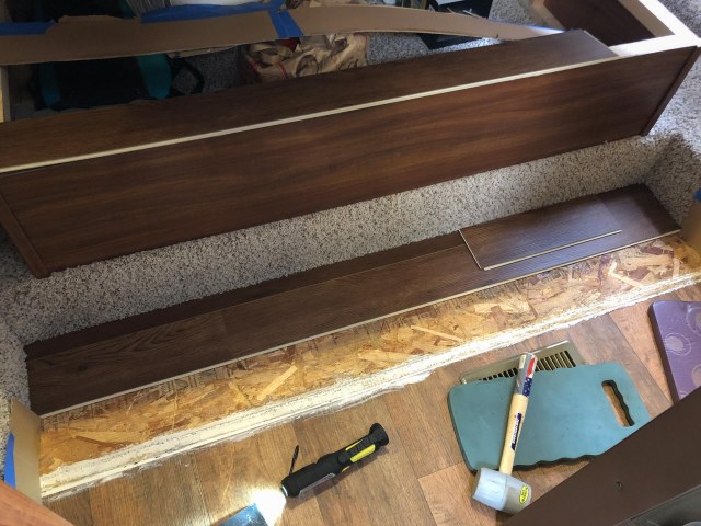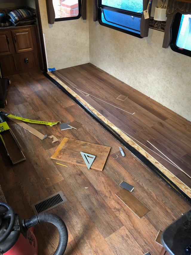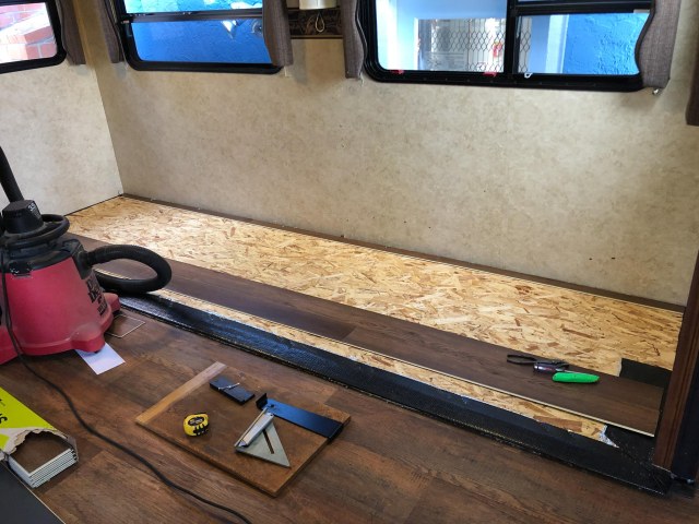 The work involved was more than I had thought it would take, but when it was all done, the time it took was worth it. The only place left with carpet in the trailer is the bed area, which is fine because there is less traffic there.