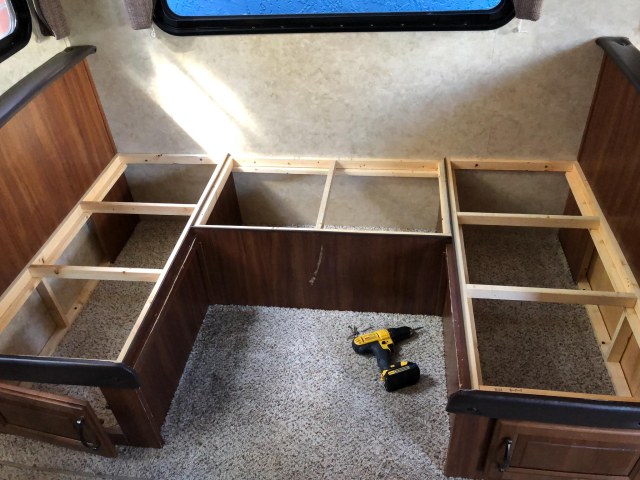 Thirty-seven screws held the dinette in place. Oh, joy.