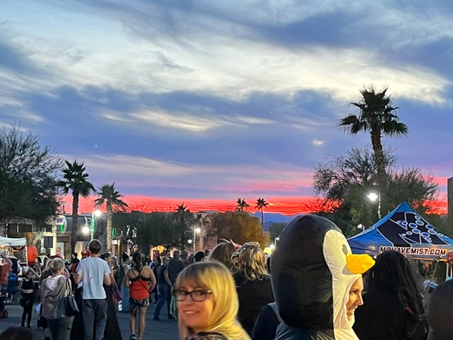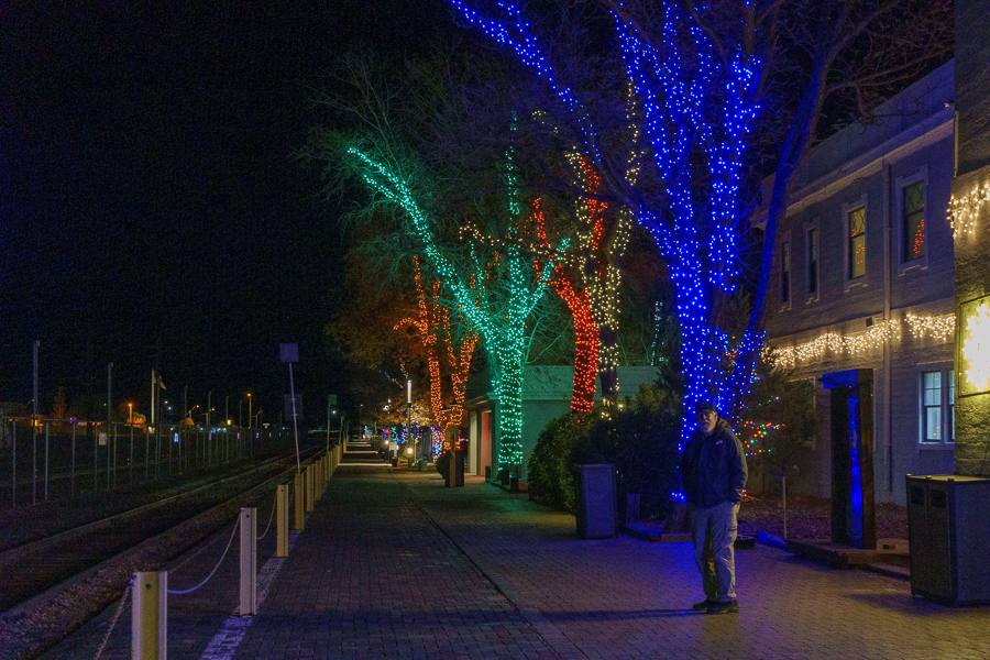 They start the holidays early in Williams, Arizona. At night, the lights sparkle bright with Christmas colors galore.