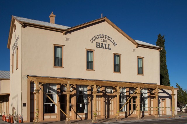 The Schieffelin Hall opened on June 8, 1881. Schieffelin was a surveyor who happened upon a vein of silver ore and subsequently formed the Tombstone Mining and Milling Company with a partner and investors.