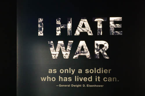 Inside are quotes from Eisenhower’s speeches. The one on the back wall is from his Guildhall Address, London, June 12, 1945. It says, “Humility must always be the portion of any man who receives acclaim earned in blood of his followers and sacrifices of his friends.”