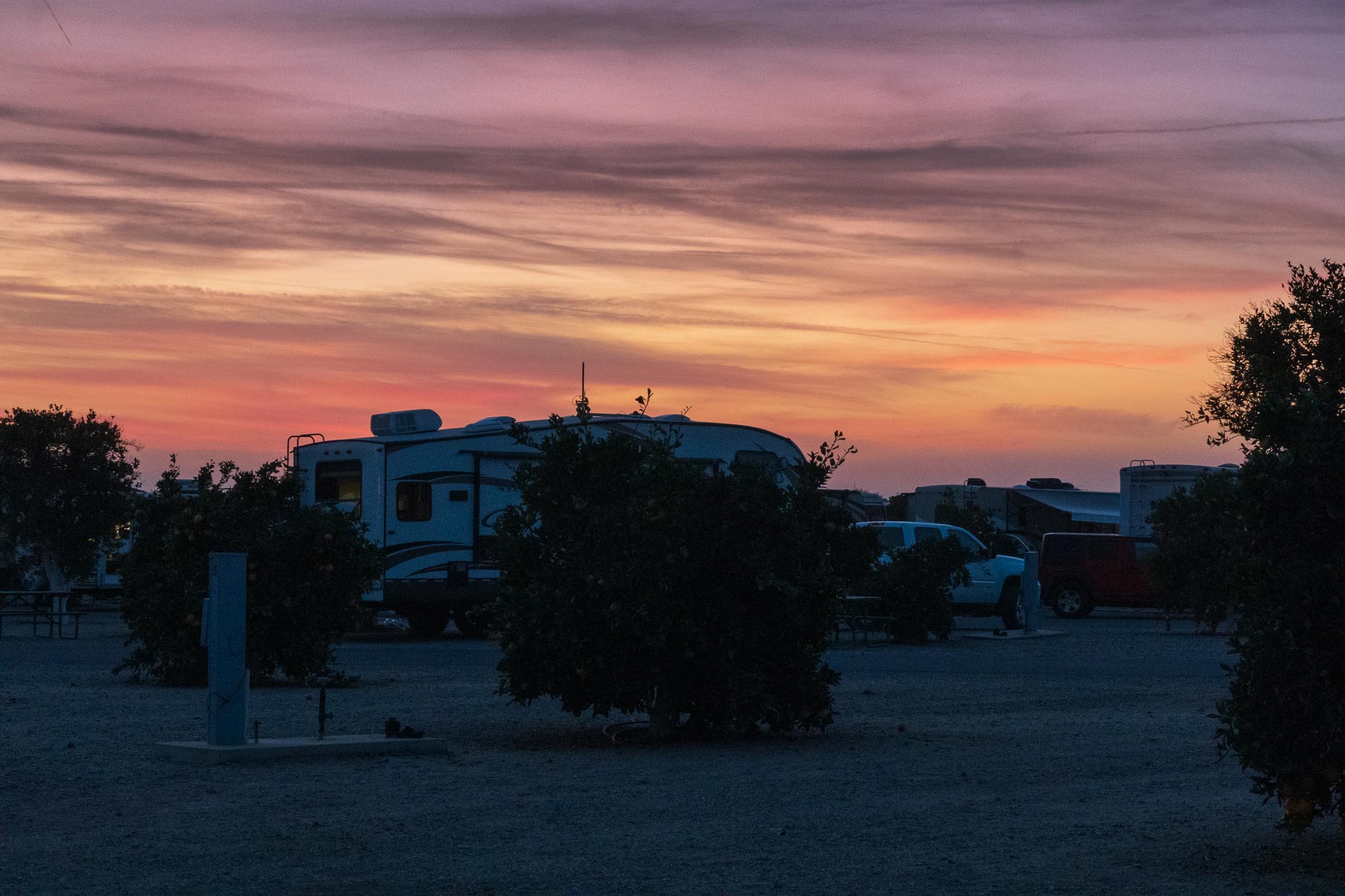 With the trailer loaded with food and clothes, we made our first leg of the trip to Barstow, California, on October 3, 2020. Smoke from the California fires filled the skies until we reached the Tehachapi Summit. I switched the AC from recycle to fresh air and we took big deep breaths as we descended into the Mojave Desert.