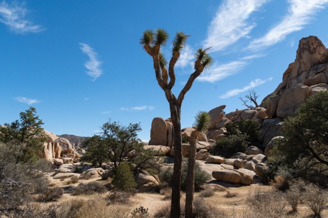 Joshua Tree National Park is unique in that it encompasses portions of both the Mojave Desert on the western half of the park and the Colorado Desert on the eastern half. The Joshua Trees, a species of yucca rather than a true tree, are most prevalent on the western side where elevations are greater than 3,000 feet.