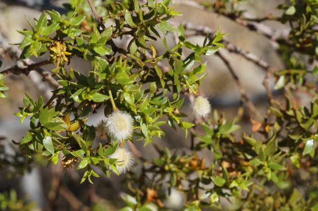 Although the branches appear as if they are covered with something soft and fluffy, don’t touch. The prickly barbs will latch onto shoes and clothing and you’ll have a jolly time trying to remove them. The cone shapes tipped with yellow are what is left from the flowers that bloom from March through May.