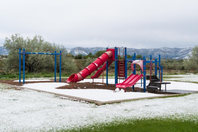 Our decision to arrive early turned out perfect. Snuggled in our fifth wheel on Monday, May 20, we gazed out at RVers arriving, not in the rain as forecast, but in the snow. The freak storm surprised the park operators as much as it did us. Accuweather.com sure got it wrong. It wasn’t until late in the day the app actually acknowledged that snow had fallen.