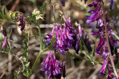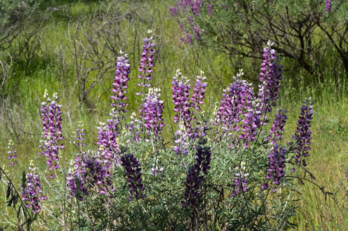 We started our hike at the Tower Climb Trail, except instead of climbing we descended toward the lake, enjoying the shade from the oak, sycamore, and other trees. Yellow, lavender, and pink wildflowers joined the winter vetch in showing off their blooms.