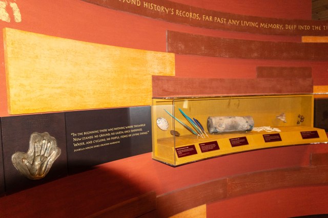 Signs for the oldest house led us down a narrow path toward an adobe building. We stepped inside the attached 1800s building to the right, which houses the Oldest House Gift Shop, selling Indian gifts and art. Inside to the left was the entrance to De Vargas House, the oldest house.
